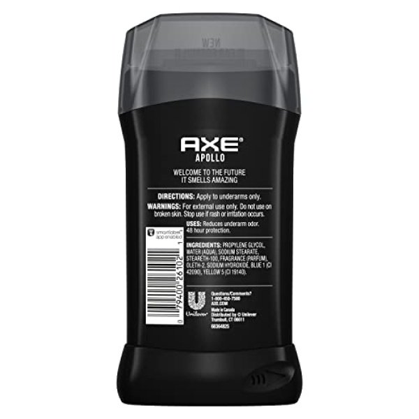 Details: Smell as fresh as you look. Because you never know when opportunity will strike, you need a stick deodorant that keeps you on point every day. With its 48h High Definition scent and upgraded fragrances, AXE Apollo Deodorant for men has got you covered. Always 100% fresh, the sage and cedarwood scents combine to leave you smelling great and feeling awesome. AXE Apollo Men’s Deo now features our longest lasting fragrance ever! Bust odor and smell great for 48 hours. Plus, our new clear formula with no aluminum or parabens glides on smooth, helping you feel fresher for longer with every swipe. All day, all night – no matter what, you’re ready. Our Deodorant Stick packaging is already made with 66% recycled materials, and by 2025 AXE aims for all our packaging to be recyclable or to include recycled materials. At AXE, we believe that one of the keys to attraction is an irresistible fragrance. That’s why we’re dedicated to helping you smell your absolute best. From our body spray to our shower gels, our antiperspirants to our aluminum free deodorants, we’re ensuring no one gets left out of the attraction game. Smell Irreistible all Day. Welcome to the Axe Effect.