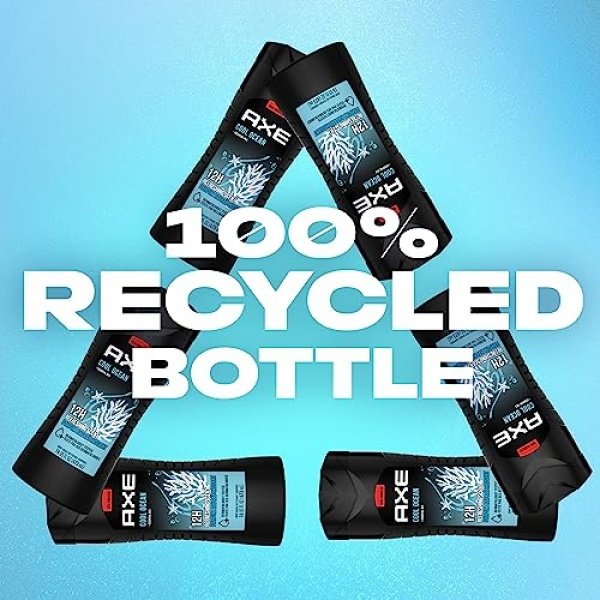 Details: Dive into freshness, A scent that feels like an endless summer. Refreshing like an ocean dive. This is body wash you can trust to keep you 100% fresh. With 48-hour High Definition scent, AXE Cool Ocean mens bodywash has got your back. An ocean-inspired blend of the light and fresh scent of essential oils, so you can relax from sundown to sunup, knowing that you smell wonderful. AXE body wash for men with long-lasting protection will stop odor and boost scent. Checked out our fresh new look? We have a new can,, but that’s not the only thing that’s new around here.* Our revolutionary Cool Ocean fights odor-causing bacteria, so you can wash away bacteria and odor and smell irresistible for 48 hours straight. So that no matter what comes your way, you’re ready. *Don’t worry, we haven’t messed with the classic AXE Cool Ocean scent. We know it’s perfect already. Axe men’s body wash helps make a fresher you and cleaner planet. Our new can design is made with infinitely recyclable metal and by 2025, AXE aims for all our packaging to be fully recyclable or to include recycled materials. Welcome to the future. It smells amazing. AXE. Smell ready. By 2025, We aim for all of our packaging to be recyclable or to include recycled stuff.