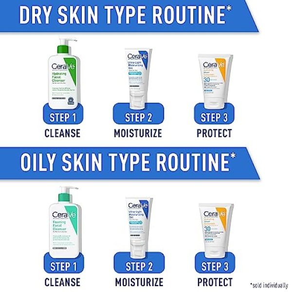 Details: Developed with dermatologists, CeraVe Ultra-Light Moisturizing Gel has a weightless feel on skin and quickly absorbs for immediate hydration that lasts throughout the day. Its formula delivers powerful moisturizing ingredients in a refreshing lightweight texture that glides easily onto skin without any tugging or pulling, and spreads evenly. Skin does not feel greasy or sticky after application. Product layers well under makeup and SPF and leaves skin feeling softer, soothed, and hydrated. Fast Absorbing Fragrance-free Oil free Paraben-free Non-comedogenic: won’t clog pores Skin does not feel greasy / skin does not look oily Skin does not feel sticky Skin feel balanced and looks matte Product does not pill on application Suitable for all skin types