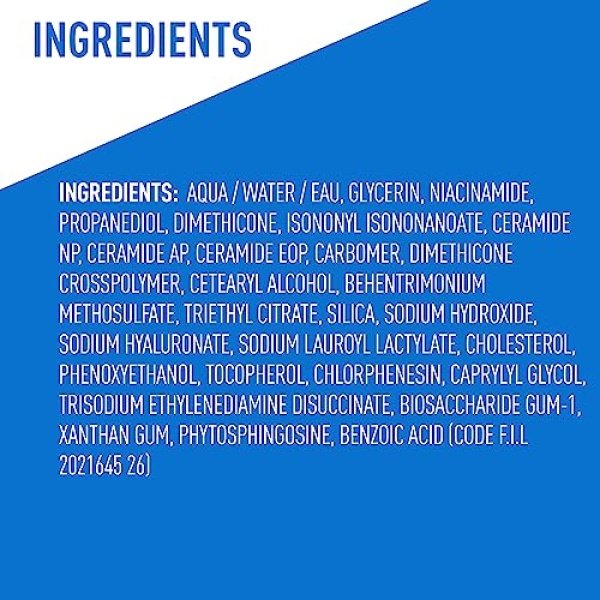 - [ GEL FACE MOISTURIZER ] Water-based moisturizer with 3 essential ceramides, niacinamide, and hyaluronic acid for immediate and long-lasting hydration while helping maintain the protective skin barrier.