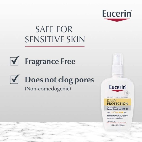 Home Beauty & Makeup Eucerin Daily Protection Face Lotion – Broad Spectrum SPF 30 – Moisturizes and Protects Sensitive, Dry Skin – 4 fl. oz. Pump Bottle