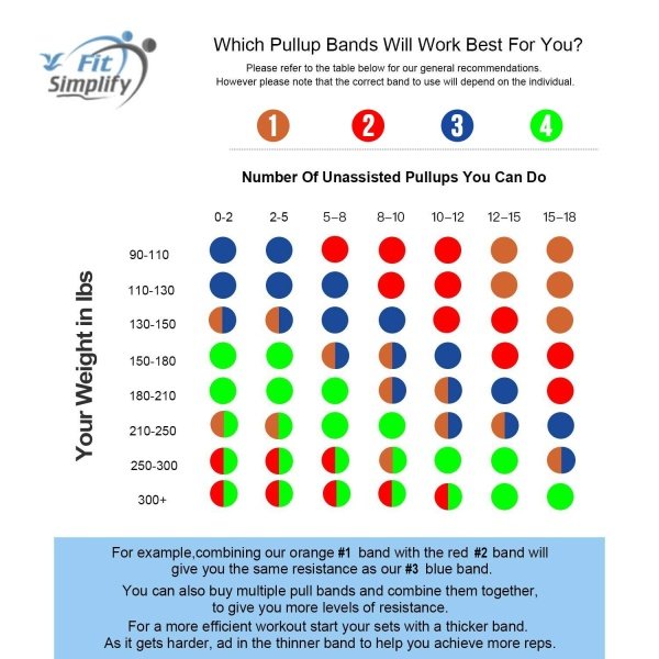 The thicker the band, the more assistance is provided. As you improve, you can use a band with less resistance. Bands can also be combined together to vary the resistance.