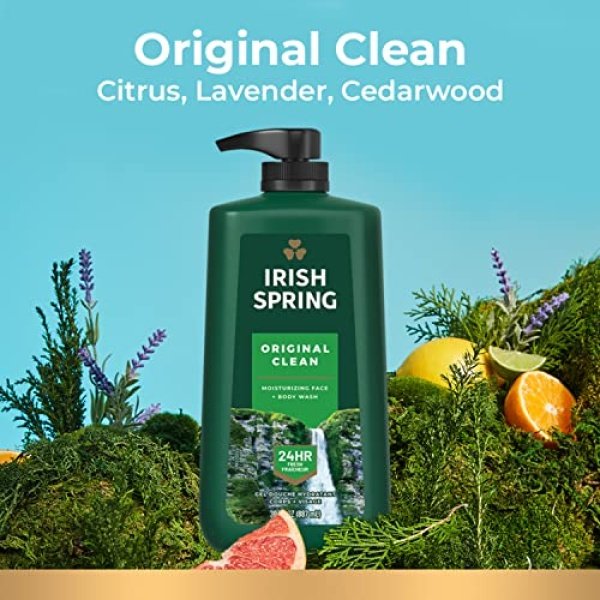 Details: Smell like you came from a nice-smelling place with Irish Spring Body Wash for Men. Count on Irish Spring Original Men’s Body Wash to leave your skin feeling clean — our Original Clean body wash for men retains the skin’s natural moisture while keeping you fresh for 24 hours. Our men’s body wash pump might have a refreshed design, but it’s still the same great liquid body wash you love. The men’s body wash packaging refresh is all part of our master plan to bring the amazing places you love to smell straight to your bathroom. Get as fresh as the great outdoors with Irish Spring. Irish Spring Original Body Wash has a sudsy lather that washes away bacteria, so you can use it as a face wash or hand soap and keep the fresh smell going all day long. Made with biodegradable cleansing ingredients, this men’s body wash is paraben free and formulated without phthalates. Feel good while washing from head-to-toe with Irish Spring Men’s Body Wash.
