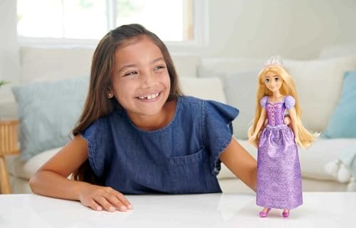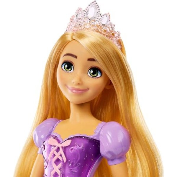 Details: Meet this Rapunzel doll, inspired by the vibrant and creative princess from Disney’s Tangled! This posable fashion doll is shown in a sparkling outfit and accessories that include shoes and a tiara. In her signature look from the movie, this Rapunzel doll is ready for any adventure! Doll cannot stand alone. Colors and decorations may vary.
