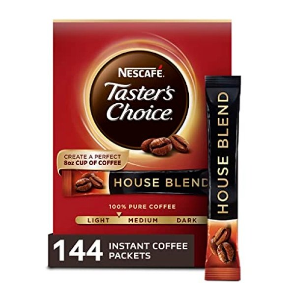 Home Grocery & Food NESCAFE Taster’s Choice, House Blend Light Medium Roast Instant Coffee, 8 boxes (144 Packets)