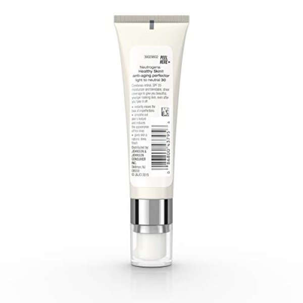 Details: Use Neutrogena Healthy Skin Anti-Aging Perfector Tinted Facial Moisturizer with SPF 20 sunscreen to help reduce the appearance of fine lines. This all-in-one daily moisturizer combines the anti-aging properties of retinol with an SPF 20 moisturizer to offer blendable sheer coverage that helps even tone and smooth skin’s texture while protecting against skin-damaging sunrays. This tinted moisturizer is enriched with clinically proven retinol treatment as well as vitamins and antioxidants to fight the appearance of wrinkles even after you take it off. Neutrogena Healthy Skin Anti-Aging Perfector SPF 20 works across skin tones for a natural, dewy finish with sheer coverage.