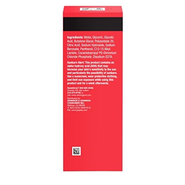 Details: Get a healthier looking complexion with Neutrogena Stubborn Texture Liquid Exfoliating Treatment with dermatologist recommended ingredients including 7% AHA blend & Pro-Vitamin B5. Designed for oily, acne-prone skin, this facial exfoliator from a dermatologist-recommended brand removes dead skin & excess oil that can lead to blemishes. This liquid exfoliant is a gentle yet effective way to exfoliate without any scrubbing & won’t leave your skin feeling dry or stripped. It’s packed with a blend of glycolic & citric acids to help remove pore-clogging dirt & oil. Formulated with Pro-Vitamin B5 to help nourish skin, it improves texture after just one week. pH-optimized for optimal efficacy, the formula is fragrance-, paraben-, phthalate-, alcohol- & oil-free & is not tested on animals. Apply once daily using a cotton pad over dry face & neck, avoiding contact with eyes. Allow the exfoliant to fully absorb into skin & do not rinse. 3 out of 4 consumers saw smoother looking skin after one week.