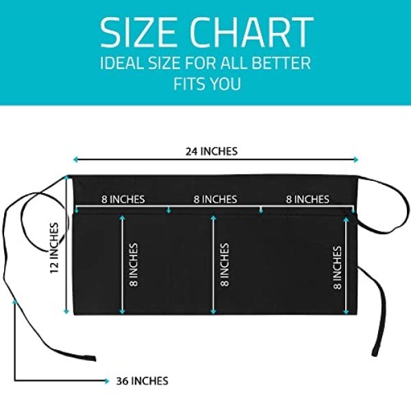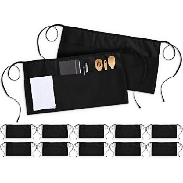 - VALUE BUNDLE – Set of 12 matching three-pocket aprons for home or business use. Great value for restaurant usage.